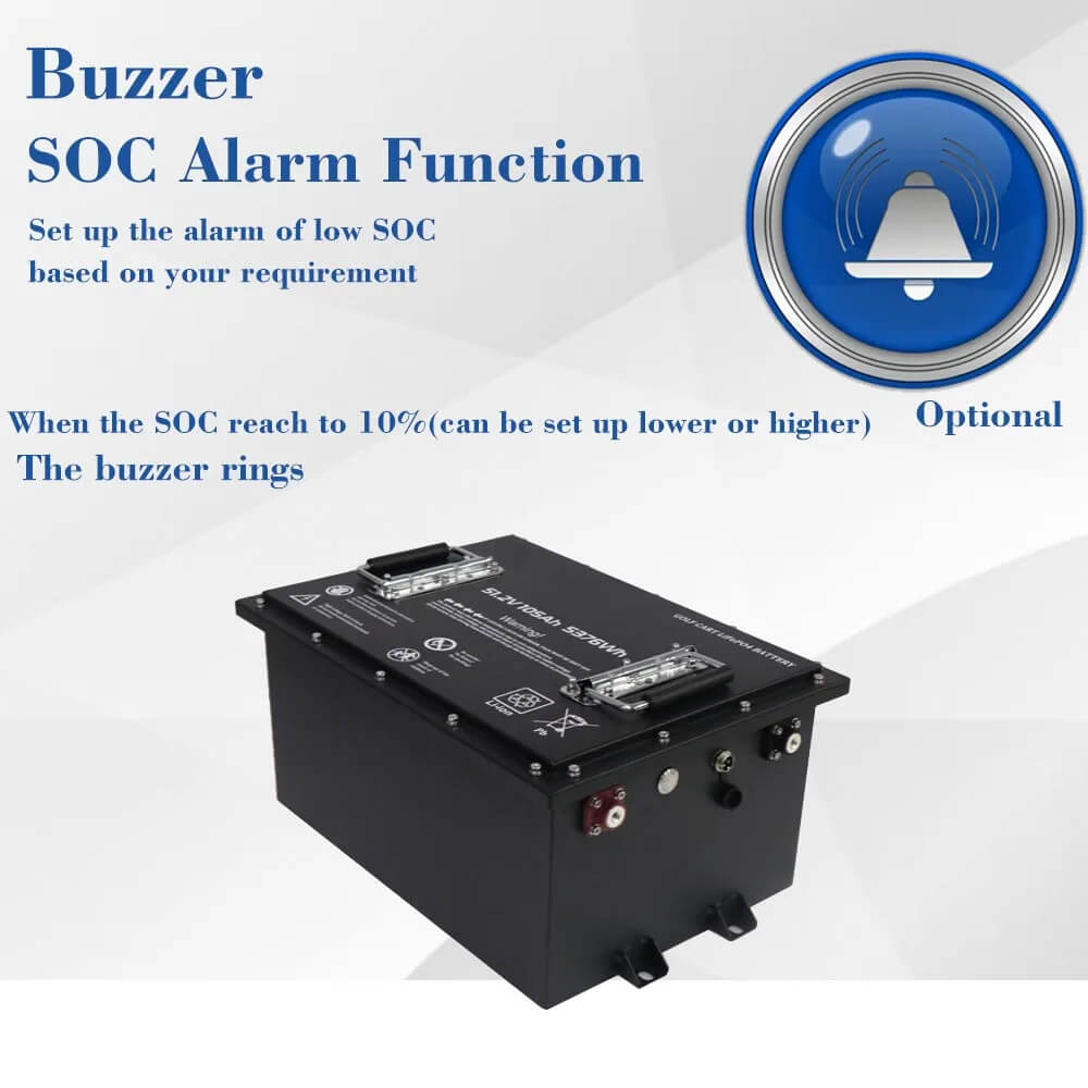 Construit în BMS, BMS integrat pentru a monitoriza temperatura, tensiunea, curentul pentru a realiza protecție la supratensiune, protecție la supracurent, protecție la supratemperatura, protecție la scurtcircuit, protecție la polaritate inversă.