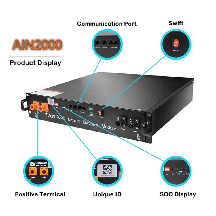 1. Bateria sistemului solar AIN2000 48v este dezvoltată cu o structură standard cu celule LFP 3.2V 50Ah și EV pentru a garanta siguranța și durata de viață remarcabilă.